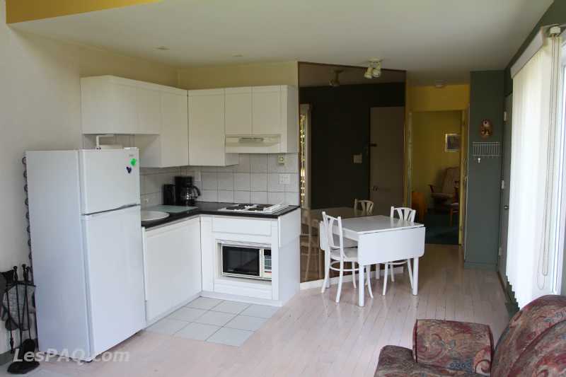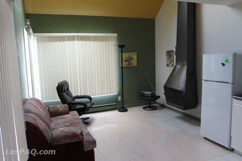 Situé au premier étage d'un complexe de 8 unités donnant une splendide vue sur la montagne et sur le fleuve. 1 chambre fermée, 1 cuisinette équipée, 1 salon avec foyer et un puits de lumière.